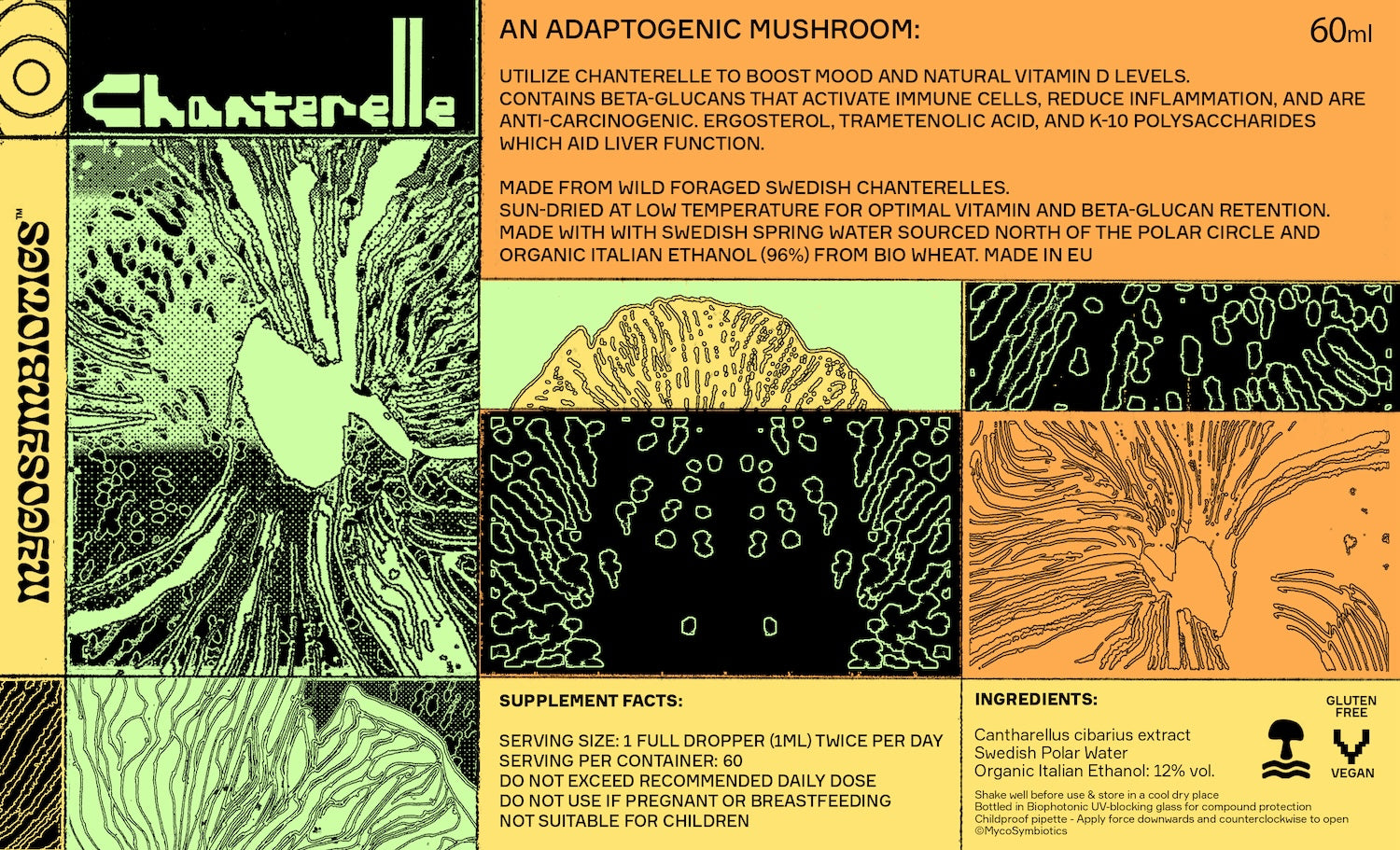 Made from wild foraged Swedish Chanterelles. Sun-dried at low temperature for optimal vitamin and Beta-glucan retention.