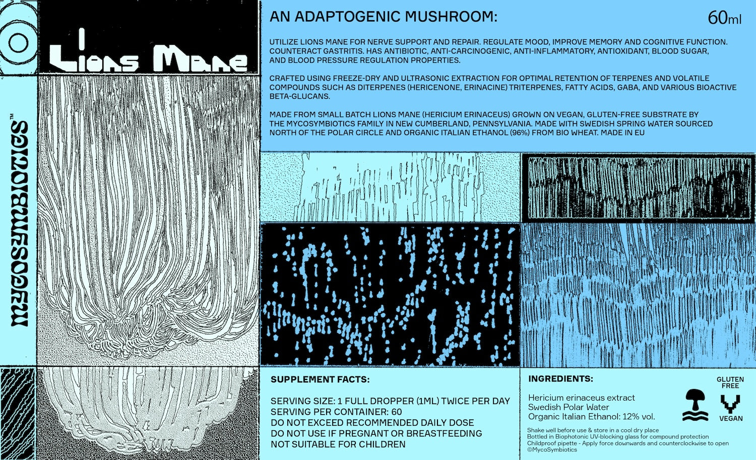 Full Spectrum Tincture from small batch US grown & foraged Fruiting Bodies. Made with Swedish Polar Spring Water and Organic Italian Ethanol (12% vol.) from Bio Wheat.