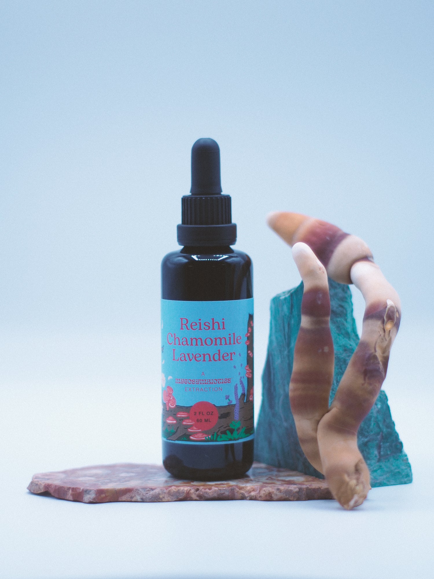 Introducing our Reishi Chamomile Lavender tincture, an intentional blend of three natural ingredients designed to promote relaxation and enhance overall wellness.